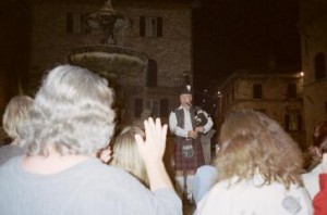 That night, I was asked to lead a parade around Assisi. As I did more and more people joined the parade until we were in a big open square. And as synchronicity would have it there happened to be a stage in the square. So up I got and started to perform for the gathering crowd.